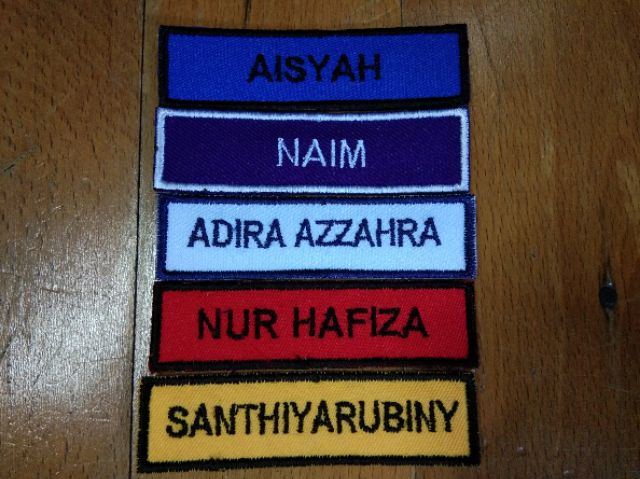 Tempah tag nama kain. Anda untung jual sulam nametag RM240. Minimum order 1set 4 keping. Kini di Malaysia terdapat pelbagai jenis kain yang boleh didapati antaranya adalah seperti Jakel Nagoya Kamdar Gulatis Rawang silk dan sebagainya.